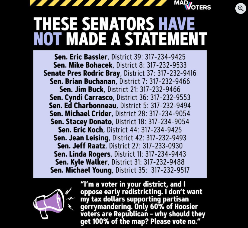 According to democracy advocates in Indiana, the good news is there are already 10 firm NO Republican votes — which means we need 6 more.
