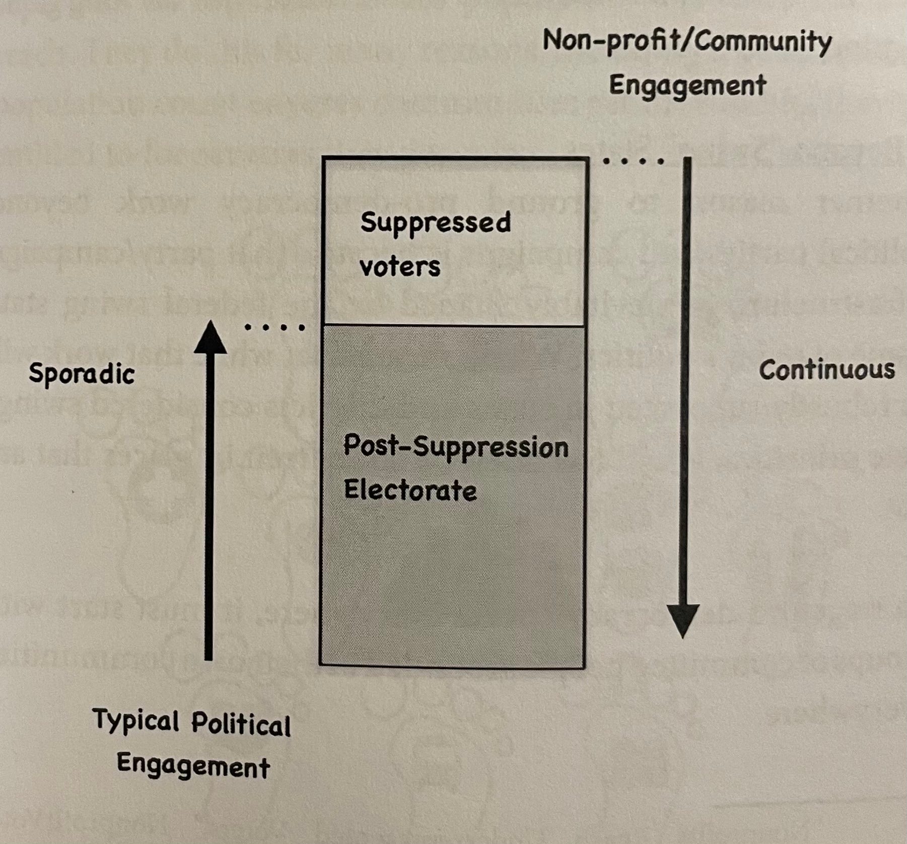 Each could engage those they serve in a way that used the footprints of their organizations to engage and to register—and many of the people they are serving are the very constituents being removed from our democracy by voter purges and the like.