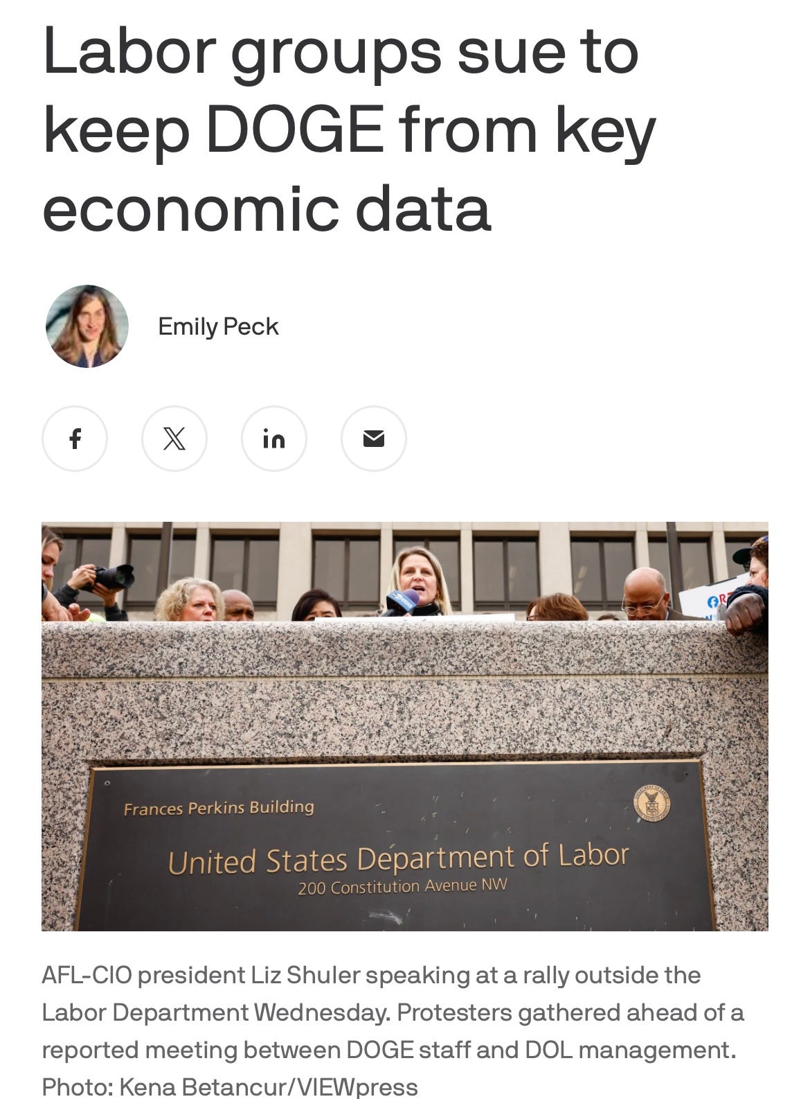 “DOGE staff will enter the Department of Labor and attempt to gain access to sensitive systems to which they do not have access, using threats of employment action to coerce cooperation from the employees tasked with safeguarding the data of millions of Americans and many federal employees….DOGE staff may also attempt to begin an unlawful wholesale dismantling or restructuring of the agency to suit the private business interests or political preferences of DOGE leaders or President Trump.”