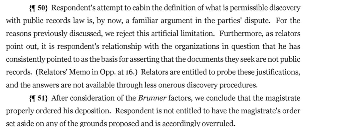 :Yost has appealed this to the Ohio Supreme Court, whining for close to 100 pages why he shouldn’t have to turn over records right be deposed. And he also filed a separate suit against the Tenth Circuit Circuit to try to stop that Court’s order.