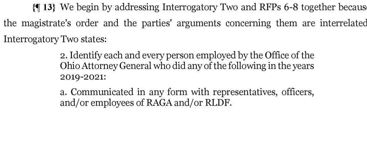 And he’s been fighting turning over those public records ever since, taking the issue all the way to the Ohio Supreme Court. Yost really doesn’t want the Center for Media and Democracy to obtain documents about his RAGA relationship behind closed doors. And he’s spent years pleading with Courts not to require him to testify.