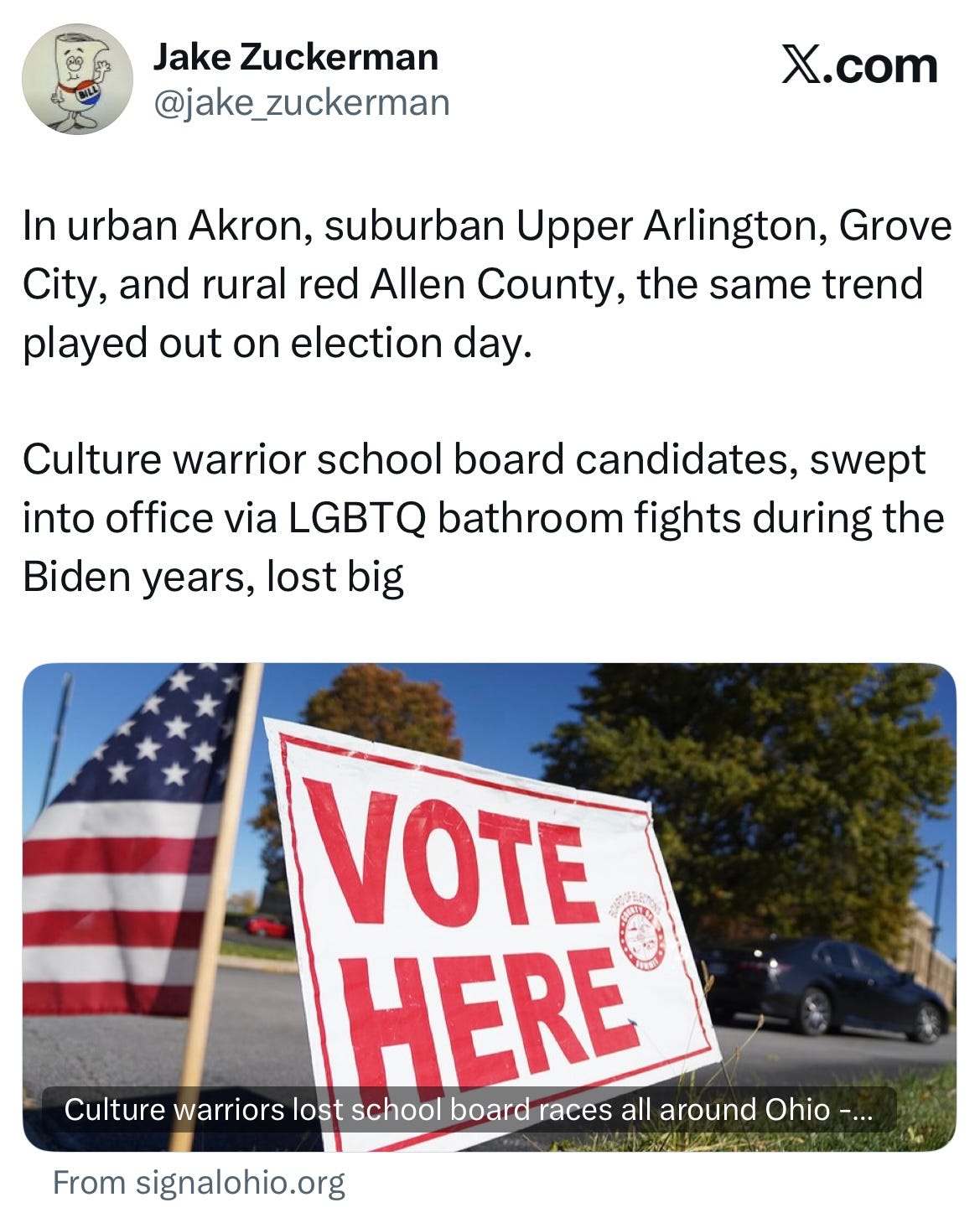 “Since you follow what politically works in Ohio more than anyone, I wanted to provide you with a quick example of what worked in my race for the Talawanda school board.