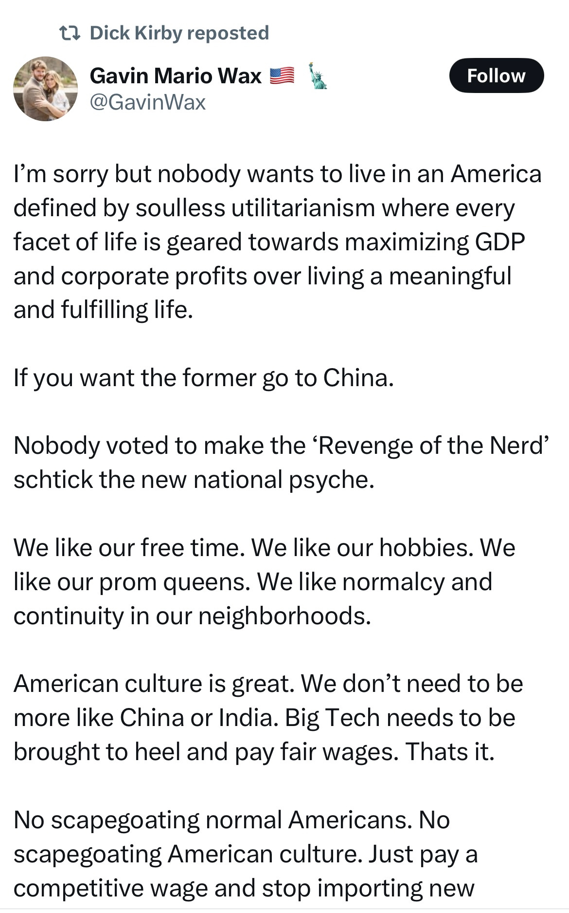those offended by Vivek’s criticism should really read some of the thinking behind the leading tech bros’ (and Vance’s) political philosophy. Their favorite thinker may be Curtis Yarvin, whose vision of the future doesn’t even include the United States at all: governments like the United States “should be replaced by a global spiderweb of tens, even hundreds, of thousands of sovereign and independent mini-countries, each governed by its own joint-stock corporation without regard to the residents’ opinions”