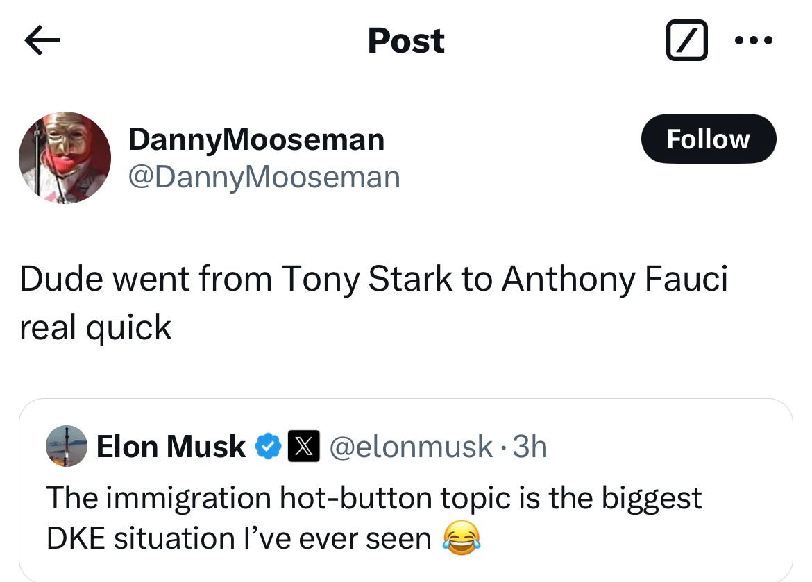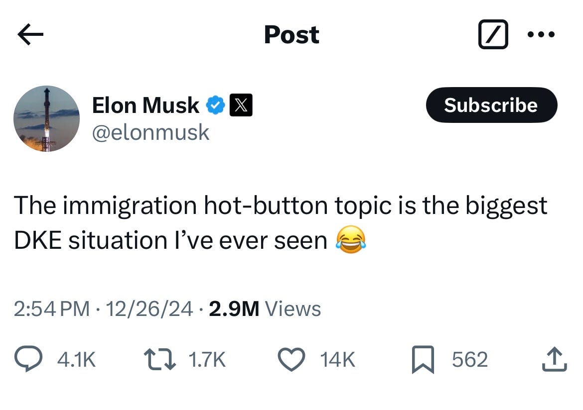 Elon Musk sided with Ramaswamy in the dispute. (“DKE” is referring to the Dunning-Kruger Effect, a not so subtle way to tell those who don’t agree with you that they are too stupid to even weigh in):