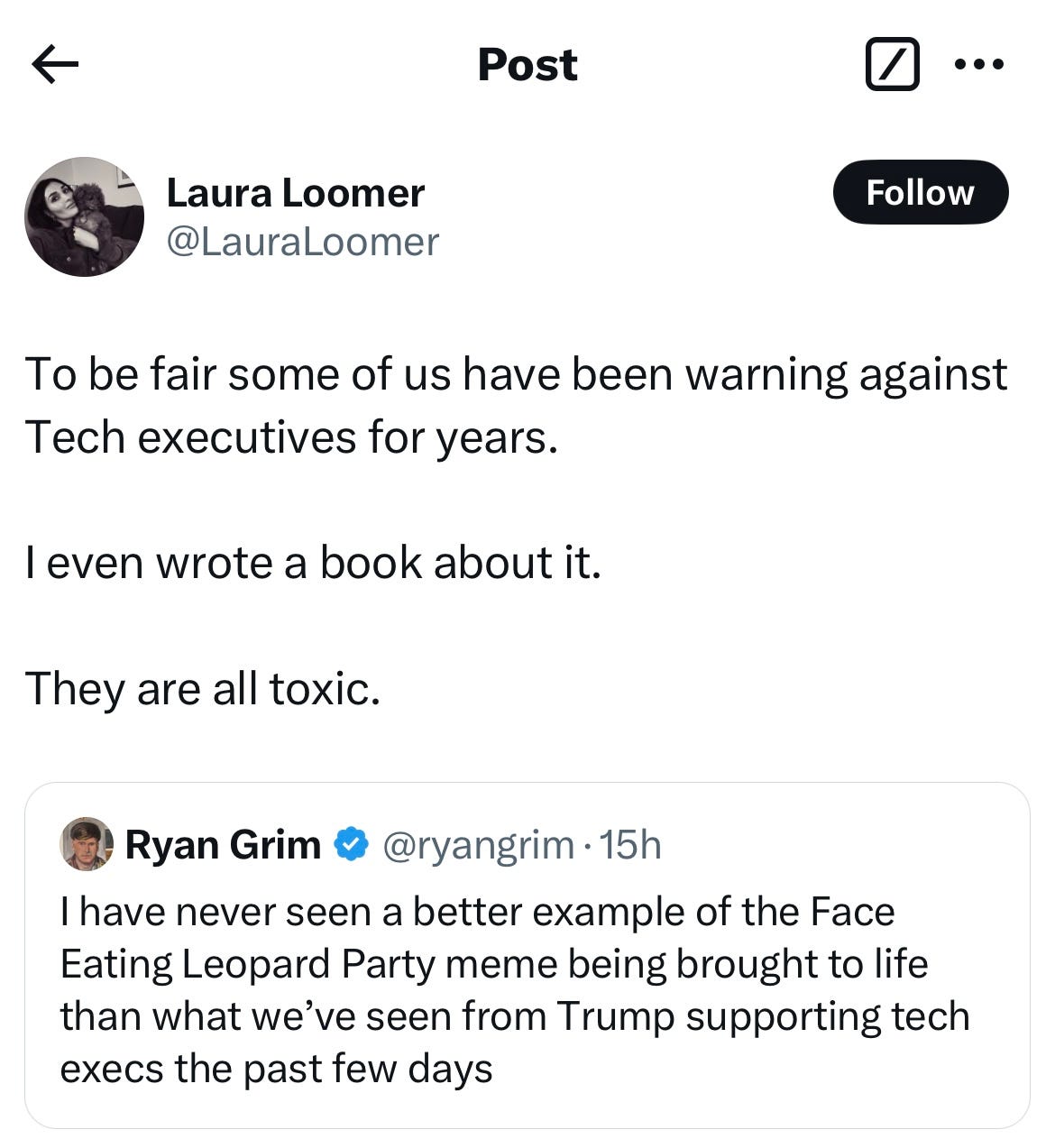 The entire imbroglio led some to question the broader role big tech is playing in MAGA world and American government. Back to Loomer:
