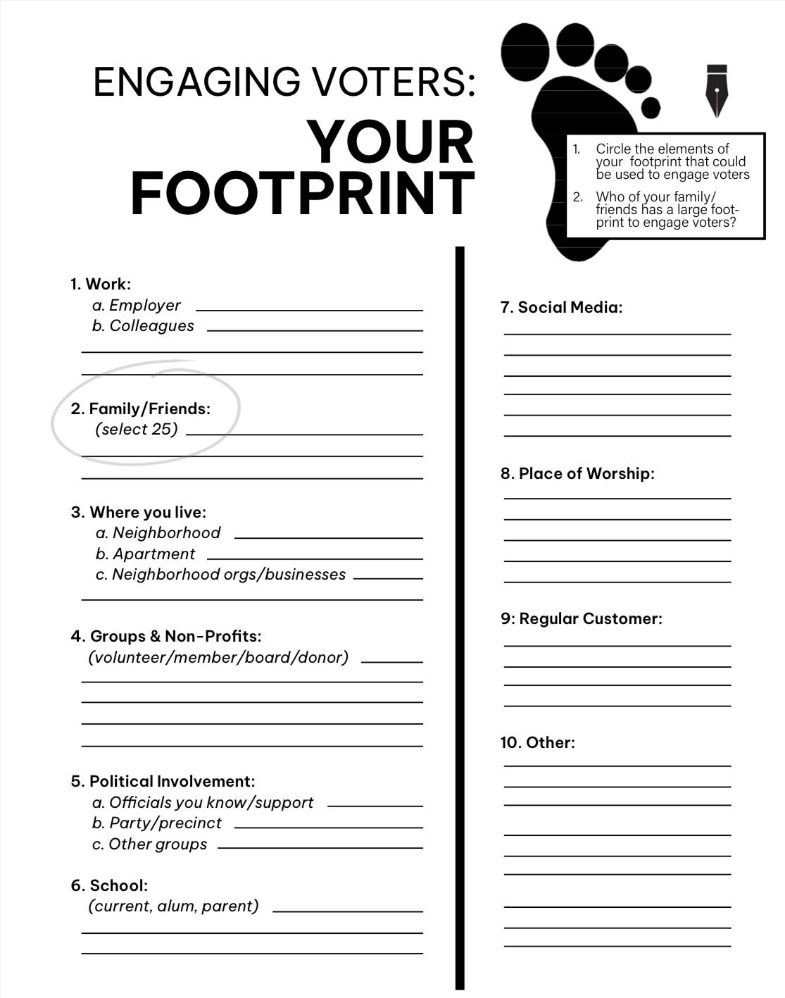 Together, this is your life footprint. It’s the most powerful thing you can dedicate to democracy. So get it all down on paper.
