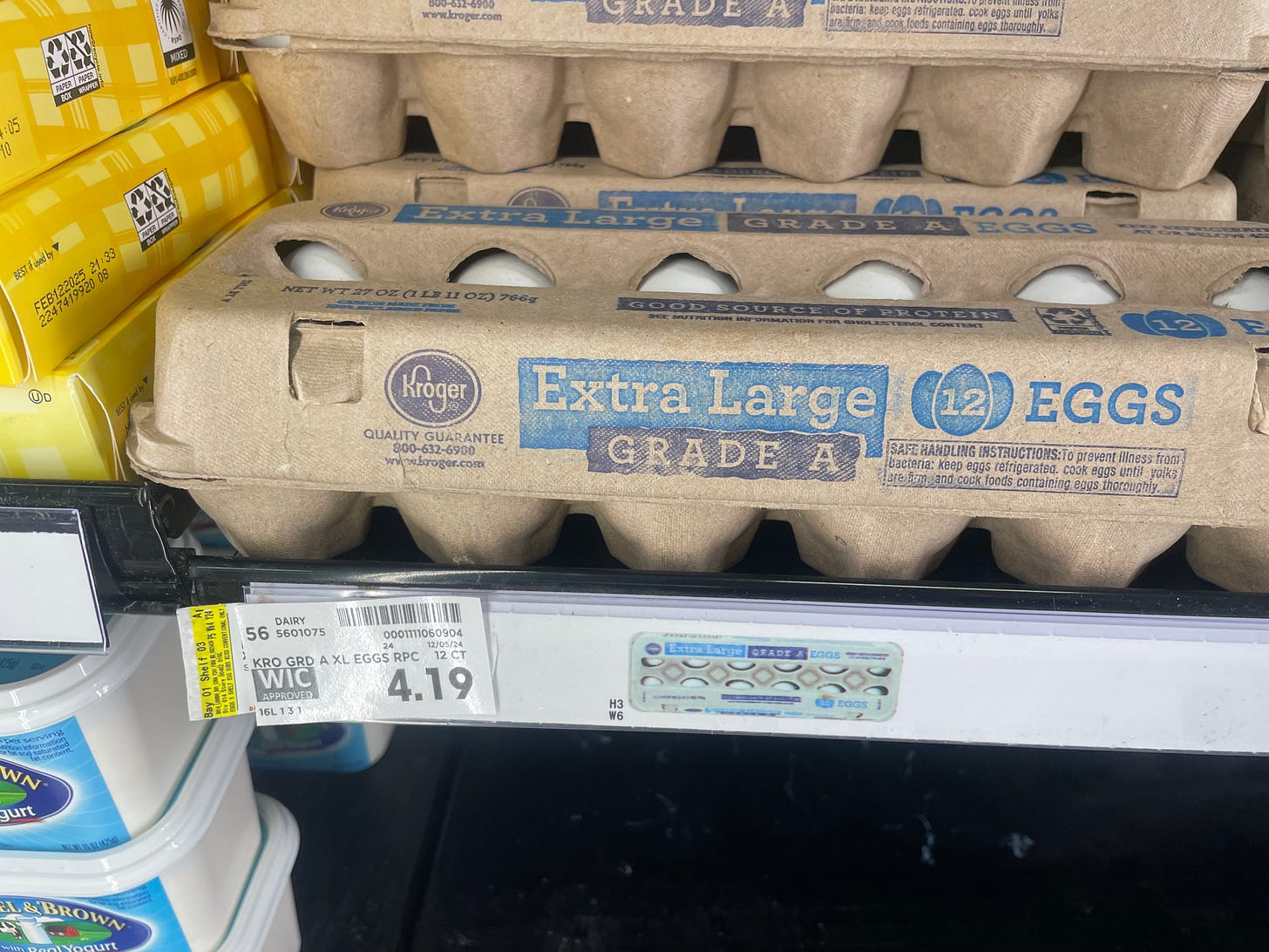 Awesome! I did the same thing on Dec 2, taking photos of several of the very cheapest eggs, bread, and milk at Food Lion in Durham NC. They all had WIC labels. How about setting up an online place where people across the US can upload their photos and we can aggregate and compare?