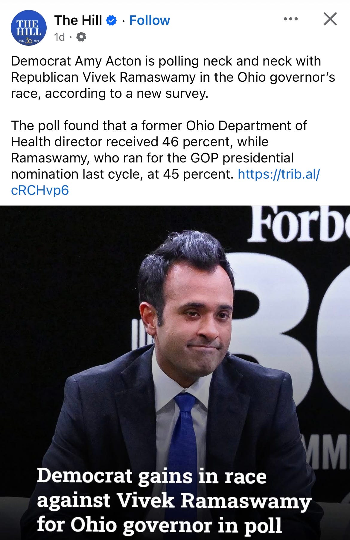 And when his anemic standing is pitted against Dr. Amy Acton—the former Ohio health director who entered the race for Governor with the highest job approval of any figure in the state of Ohio—Ramaswamy now finds himself behind.