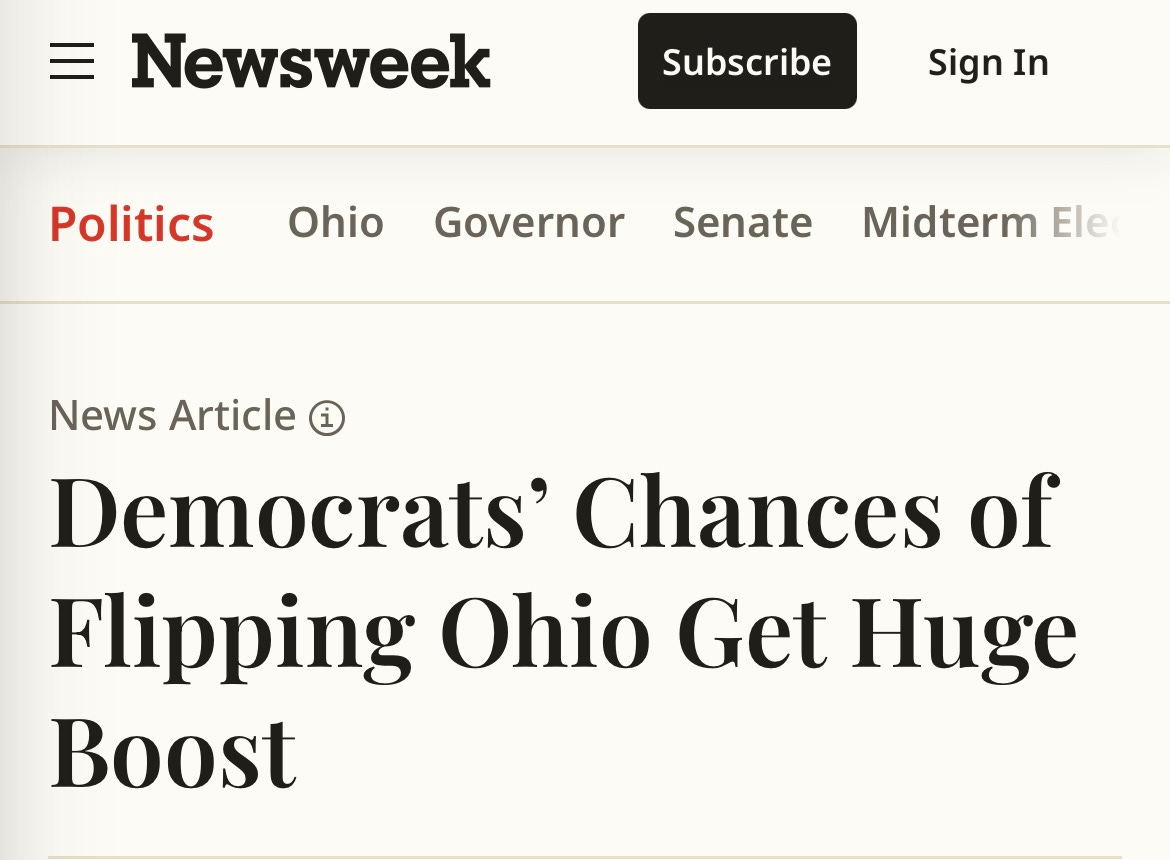 And all year long I’ve explained that this is actually a weak attack, for a number of reasons: 1) people respected her leadership during COVID, which is why she’s always been well above water in the polls; 2) the attack is years old; 3) it’s a complicated issue (with seniors especially fond of her work to save lives, and with RFK ‘s antics placing a premium on science-based candidates when it comes to our health); and 4) Dr. Acton was standing alongside (Republican) Governor DeWine throughout the crisis, so attacking her for what they did together seems like a stretch.