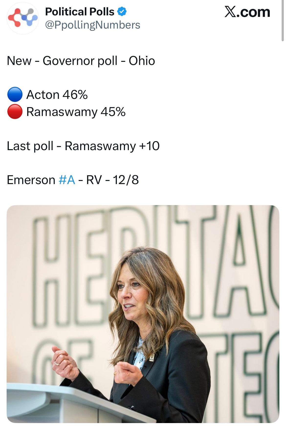 Here’s a video of analysts discussing the shift—which they attributed to Acton’s relentless focus on affordability, Ramaswamy’s unending unforced errors, and an especially strong movement among women voters: