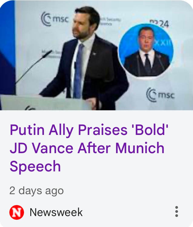 It is within that context that you see just how in line Vance’s speech is with Putin’s project, and rhetoric. Vance says he is worried less about security threats from Russia and others, and more “the threat from within”: