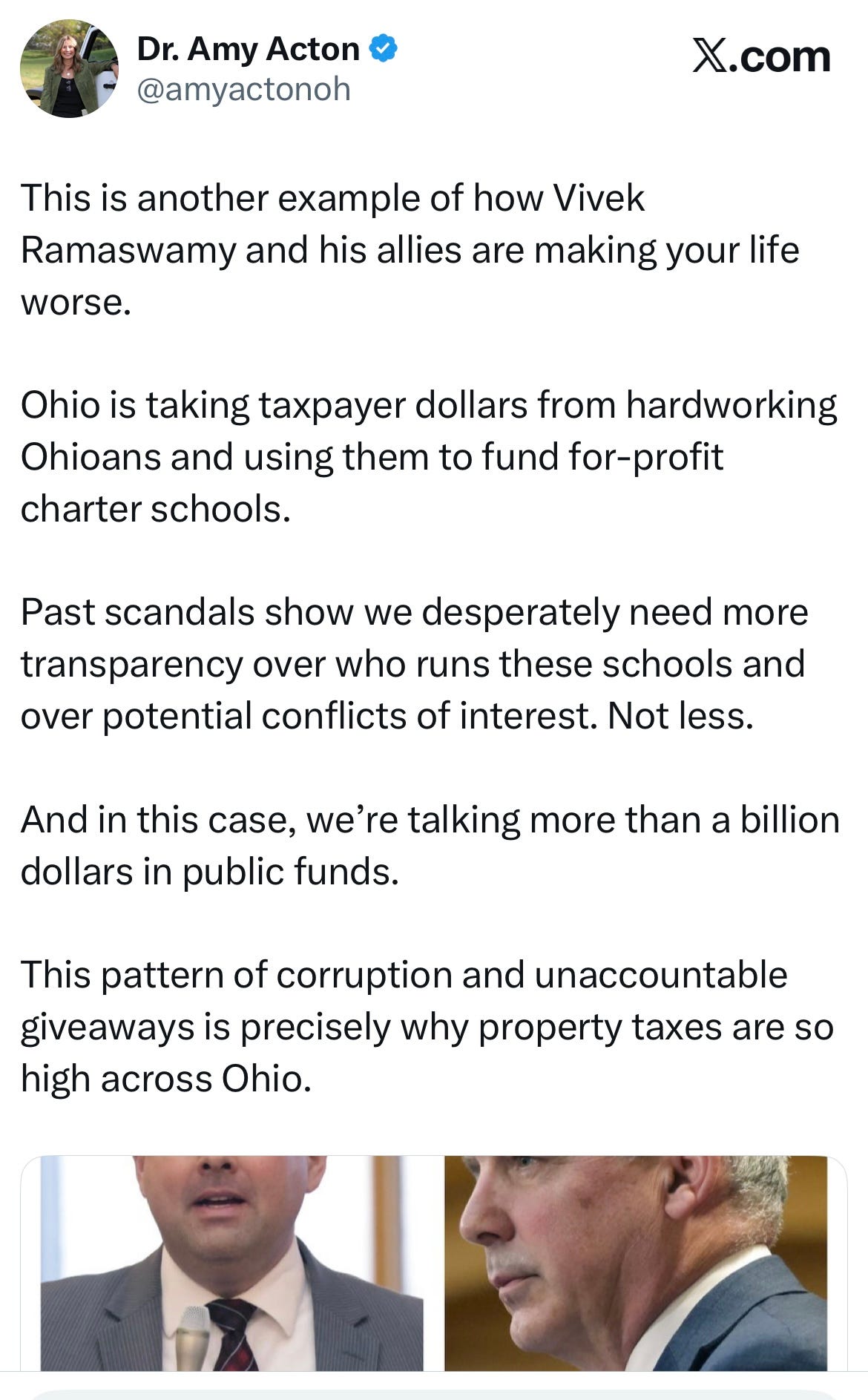 Even worse, one of the two people doing this dirty work was the guy Vivek Ramaswamy chose as his running mate, State Senate President Rob McColley. Dyer, again: “It’s awfully interesting that the lieutenant governor candidate is trying to make sure that a $1.6 billion program can remain in the dark from Ohio taxpayers,” he said. “During an election year, that’s certainly a choice.”