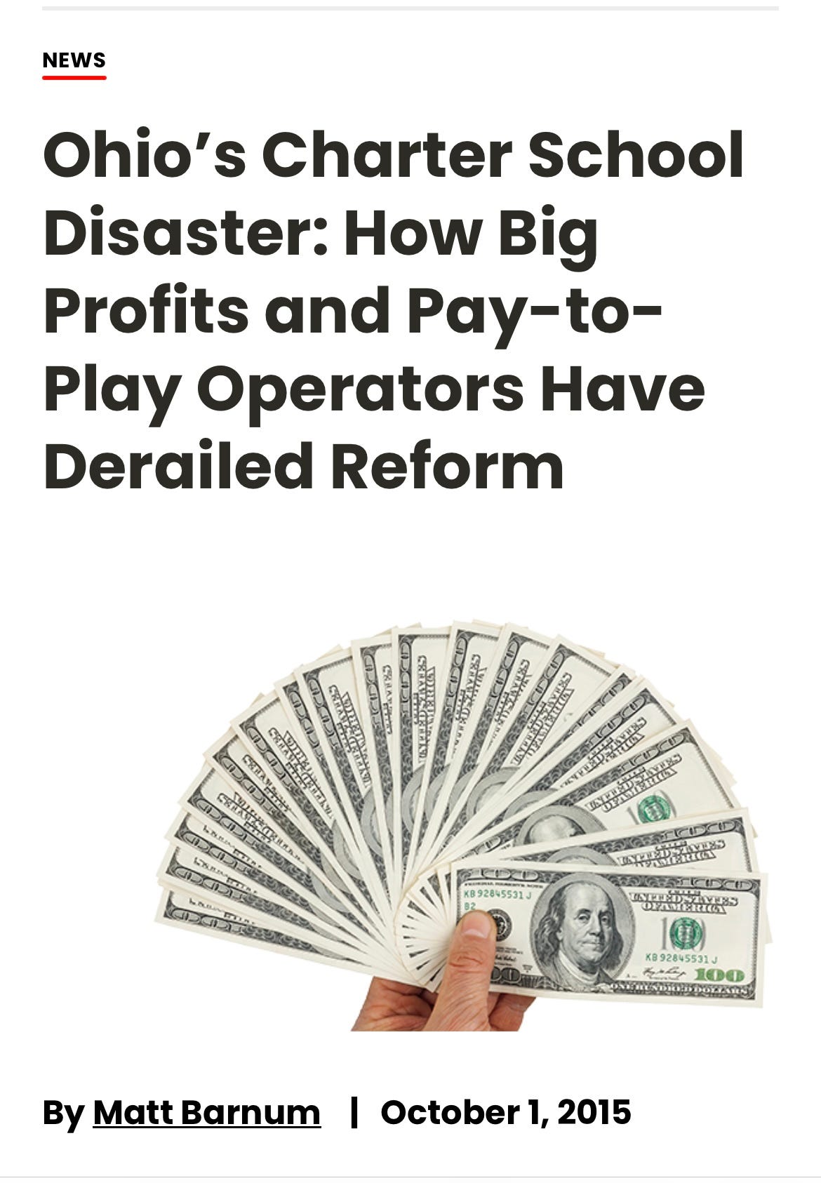 Both among the larger scandals in the history of Ohio, and part of a for-profit charter school industry that’s diverted billions from Ohio public schools and delivered paltry outcomes. Enriching private players who became big political donors to the politicians who made it all happen—while everyday Ohioans pay the cost of it all.