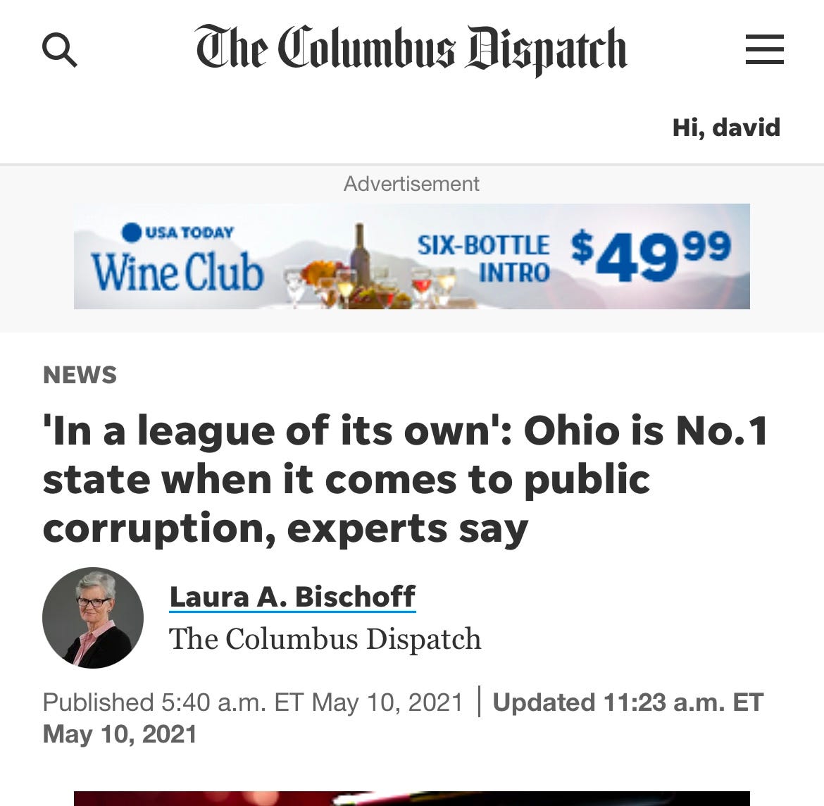 Anyway, this initial act later exploded into the largest scandal in Ohio history, taking twists and turns so extreme that two people involved (including the bribed lobbyist) commit suicide.