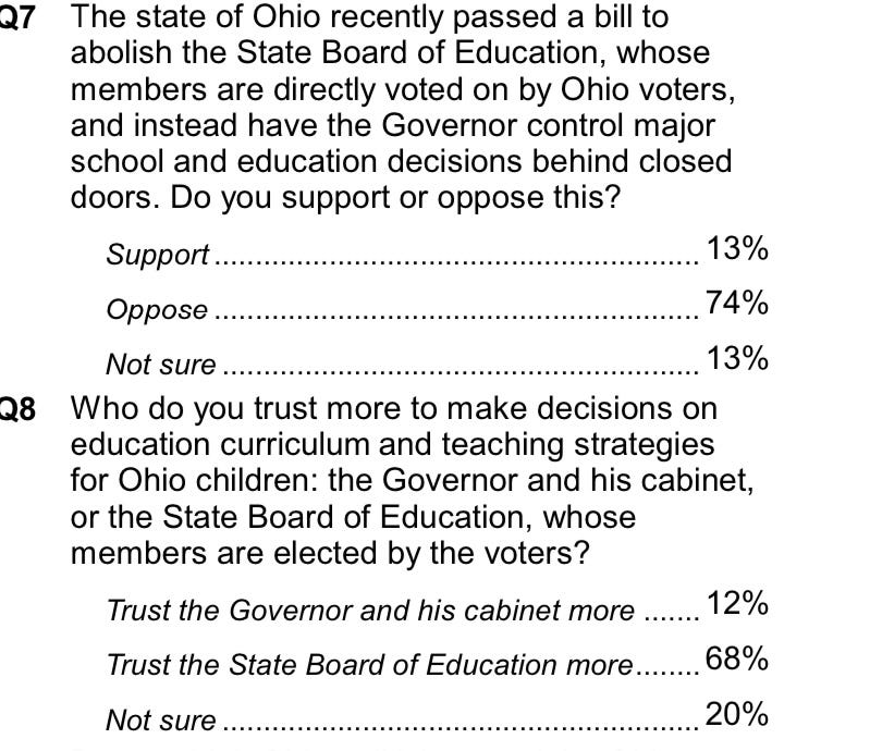 …and even though the Ohio Constitution establishes a separate education board and department, a provision the voters put in place decades ago precisely out of the concern that guardrails were needed, Husted pushed hard and publicly to make this happen.