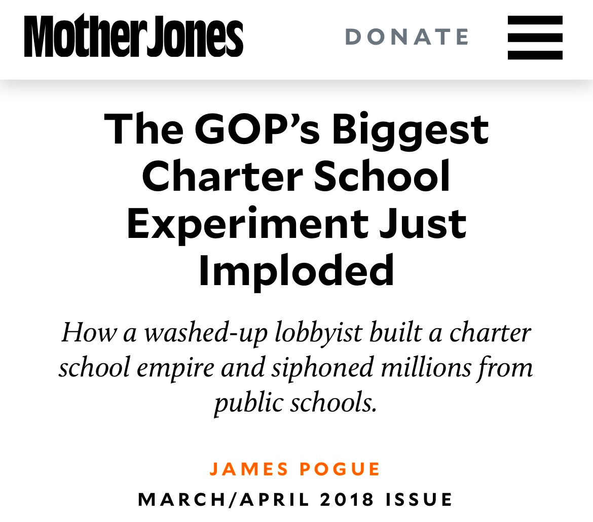 Just ask ECOT—the online for-profit charter school that emerged as the biggest player (and GOP donor), and later turned into one of the biggest scandals in Ohio history. (Horrible results, of course, but ECOT also collected millions in taxpayer funds for “students” they could not prove existed, prompting an FBI investigation).