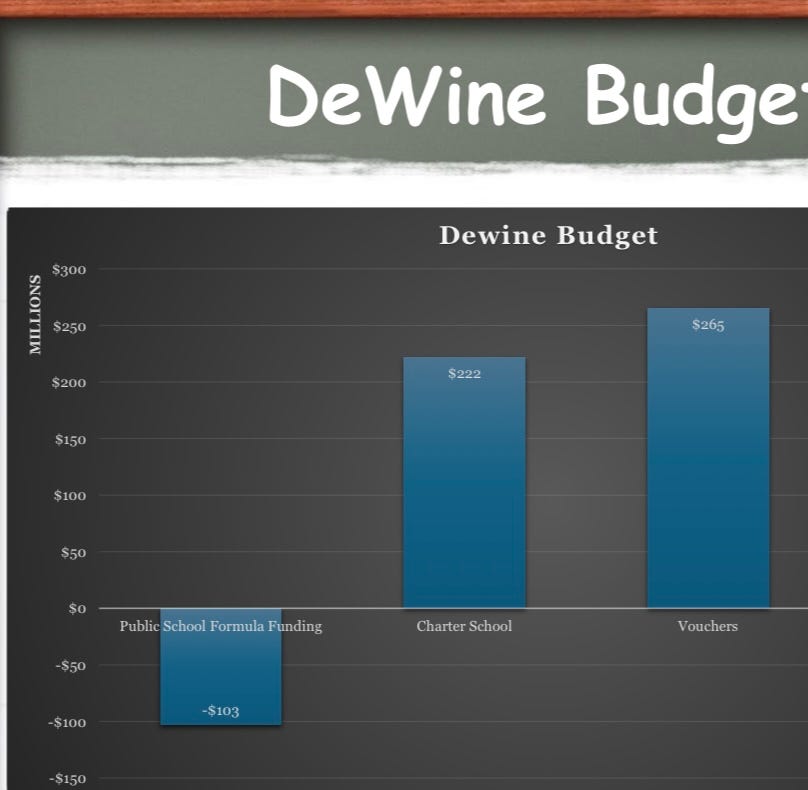 As bad as DeWine’s budget is, it is likely the high water mark for the year. Speaker Matt Huffman announced at the beginning of the year that public school funding is “unsustainable,” and is a voucher zealot, so expect the House to only take things in a worse direction in the coming weeks and months.