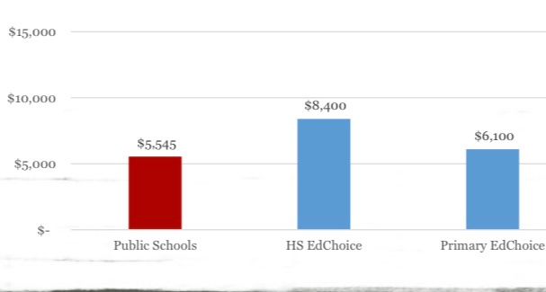 The state provides far greater (per pupil support) to private students via vouchers than traditional public school students: