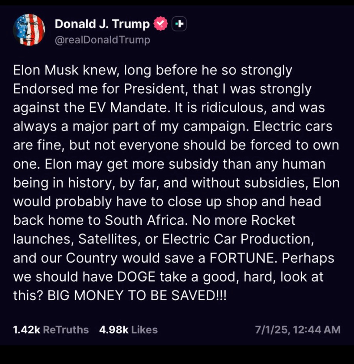 Of course, Trump swiped back at Musk for critiquing this historically awful bill.