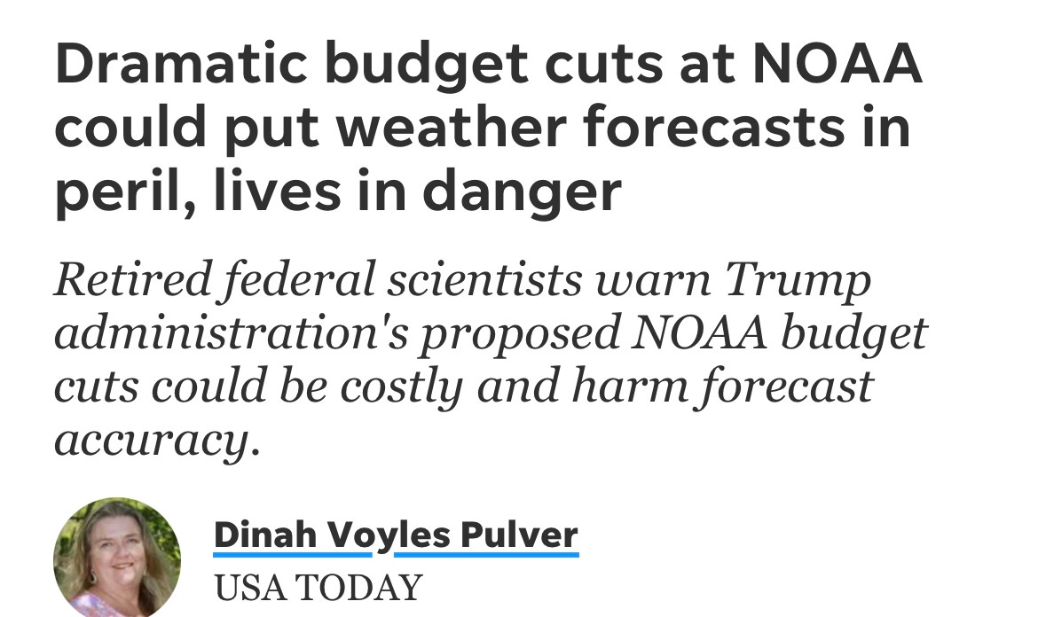 For example, it got lost amid the Medicaid and other cuts, but what was just cut from NOAA in the “Big Ugly Bill”—which almost every Republican just voted for—is far deeper than what DOGE did. Here’s a story from USA Today on this bigger round of cuts that just happened:
