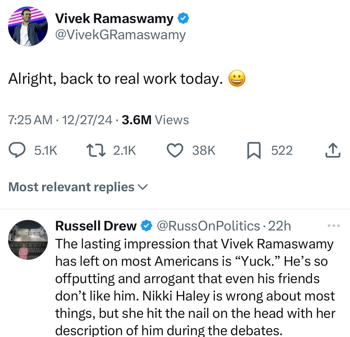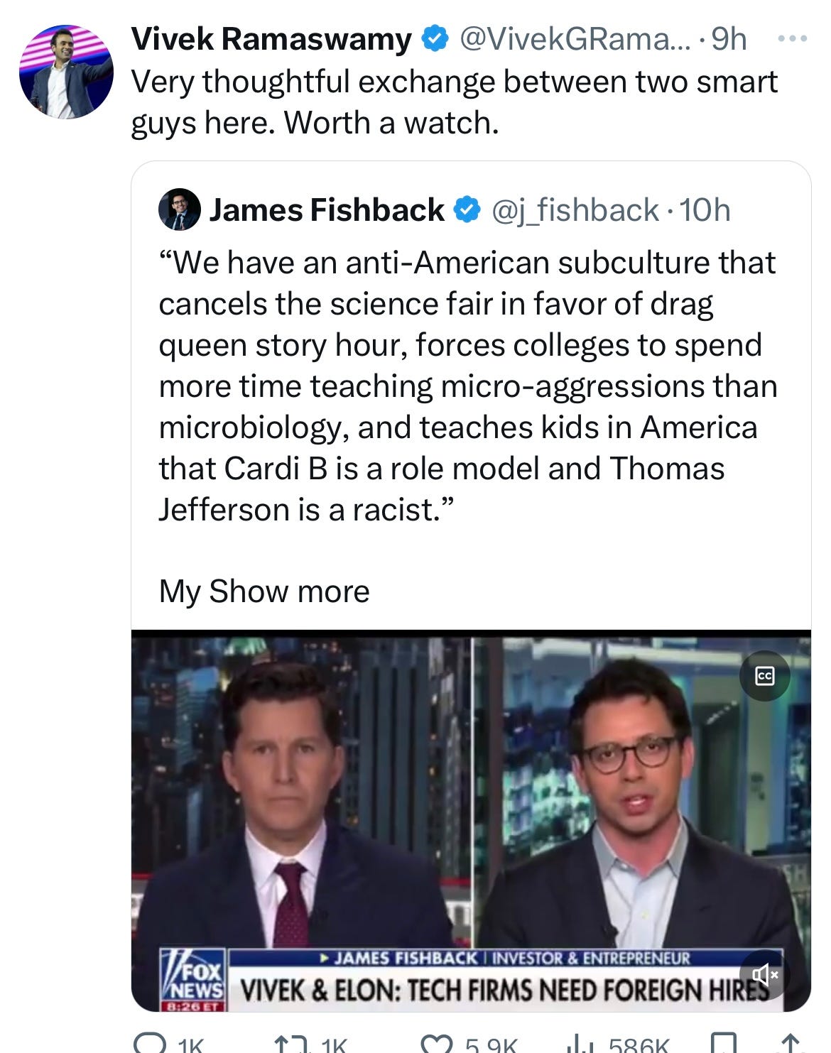 How do you unite a fractured right? Vivek knows. Just pretend you had been attacking drag queens, Cardi B and woke history and everyone will like you again: