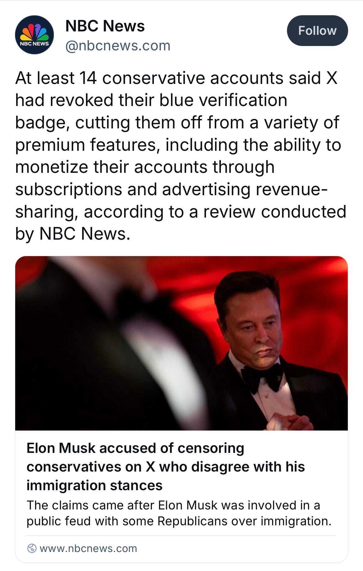 Apparently, phase 1 of Elon’s declared war is to kneecap the Twitter accounts of numerous conservatives (who he has apparently been amplifying for months to help Trump win the election):