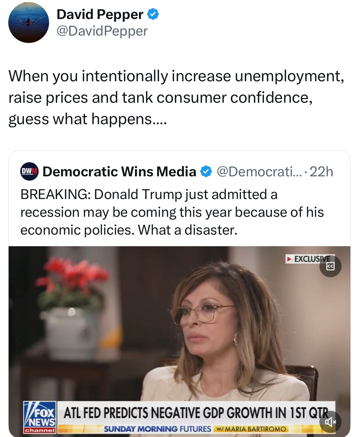 Bottom line: if you were trying to create an economic meltdown, you could not be trying any harder than Trump is.